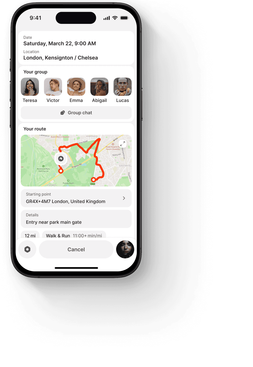 Runzy — another app we did with Veelzy team, that focus on organizing running events for 6 strangers every Saturday.
