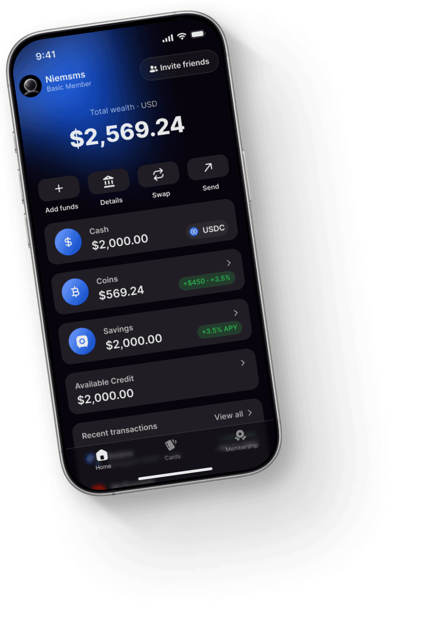 XPlace — a crypto-native financial app combining a non-custodial wallet, global transfers, card payments, savings, and lifestyle services.