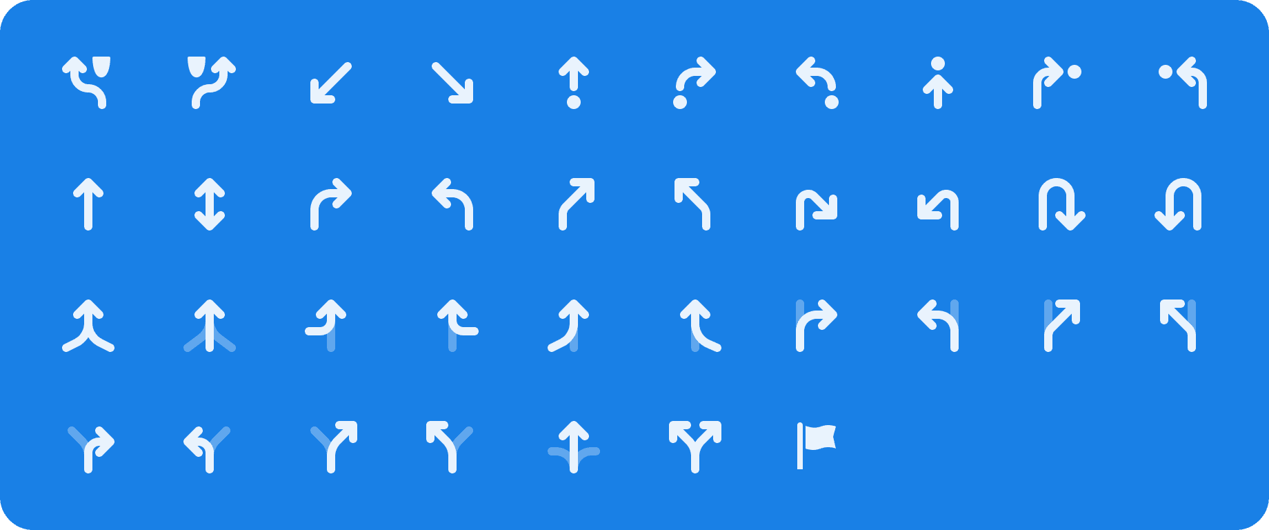 Alongside the broader iconography effort, I also contributed a more utilitarian set of icons focused on navigation. These were purpose-built for the core biking experience — icons for routes, turns, detours, and direction changes.